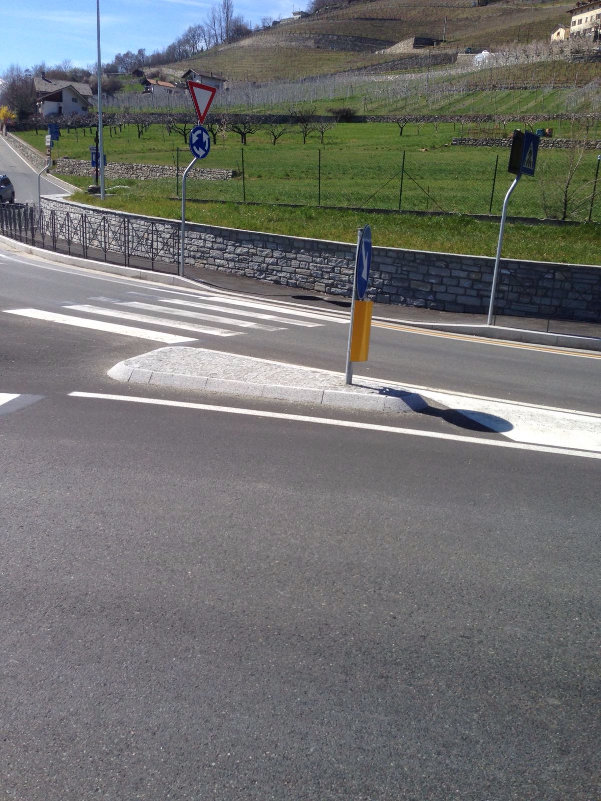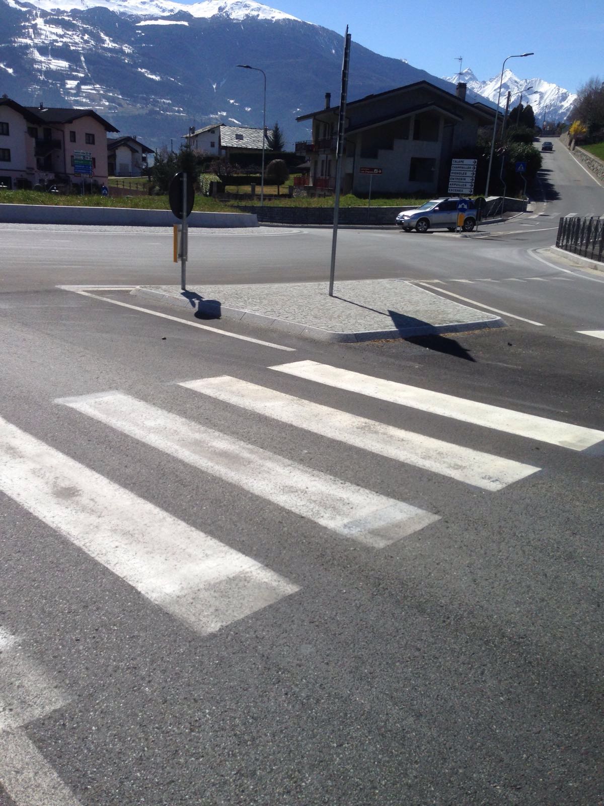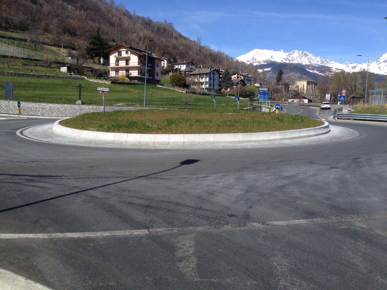 Vicino all’uscita dell’autostrada di Aosta abbiamo realizzato una rotonda con l’ausilio di cordoli in granito.
