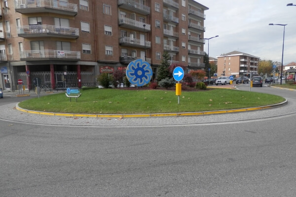 Rotonda stradale con cordoli in pietra naturale a Cuneo